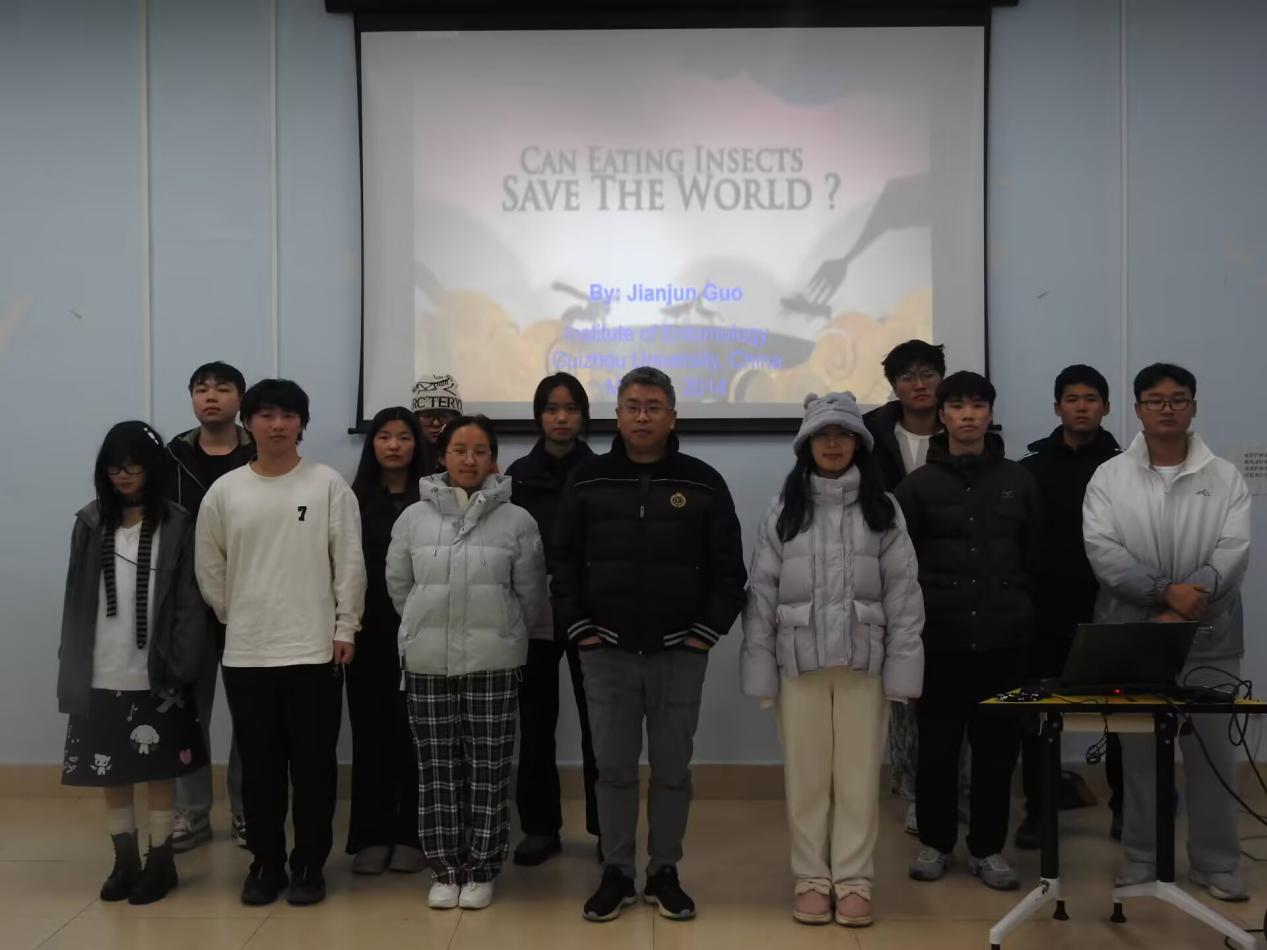在气候变化与粮食安全日益成为全球性挑战的今天,一场关于未来“吃什么”和“怎么吃”的革命正在发生。12月5日,贵州大学昆虫协会在雅文楼217A举办“食用昆虫”科普讲座,讲座邀请贵州大学昆虫研究所郭建军教授主讲。